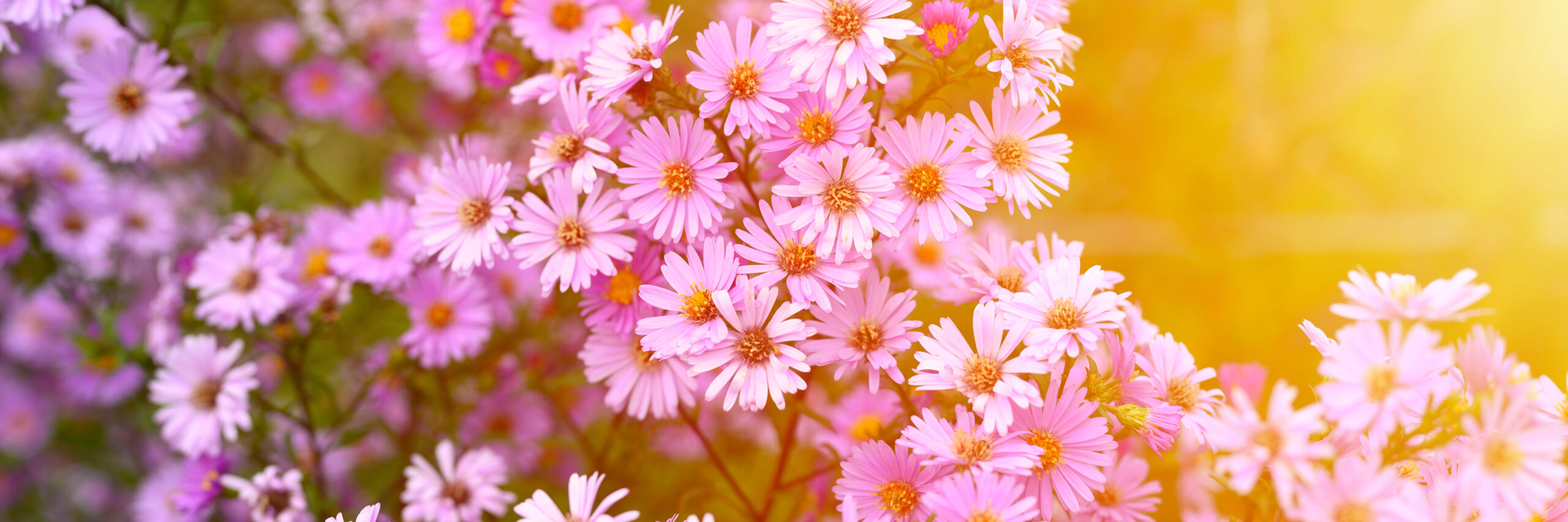 autumn flowers Aster novi-belgii vibrant light purple color in full bloom in the garden. banner. flareVon Kirsten / 18. August 2025